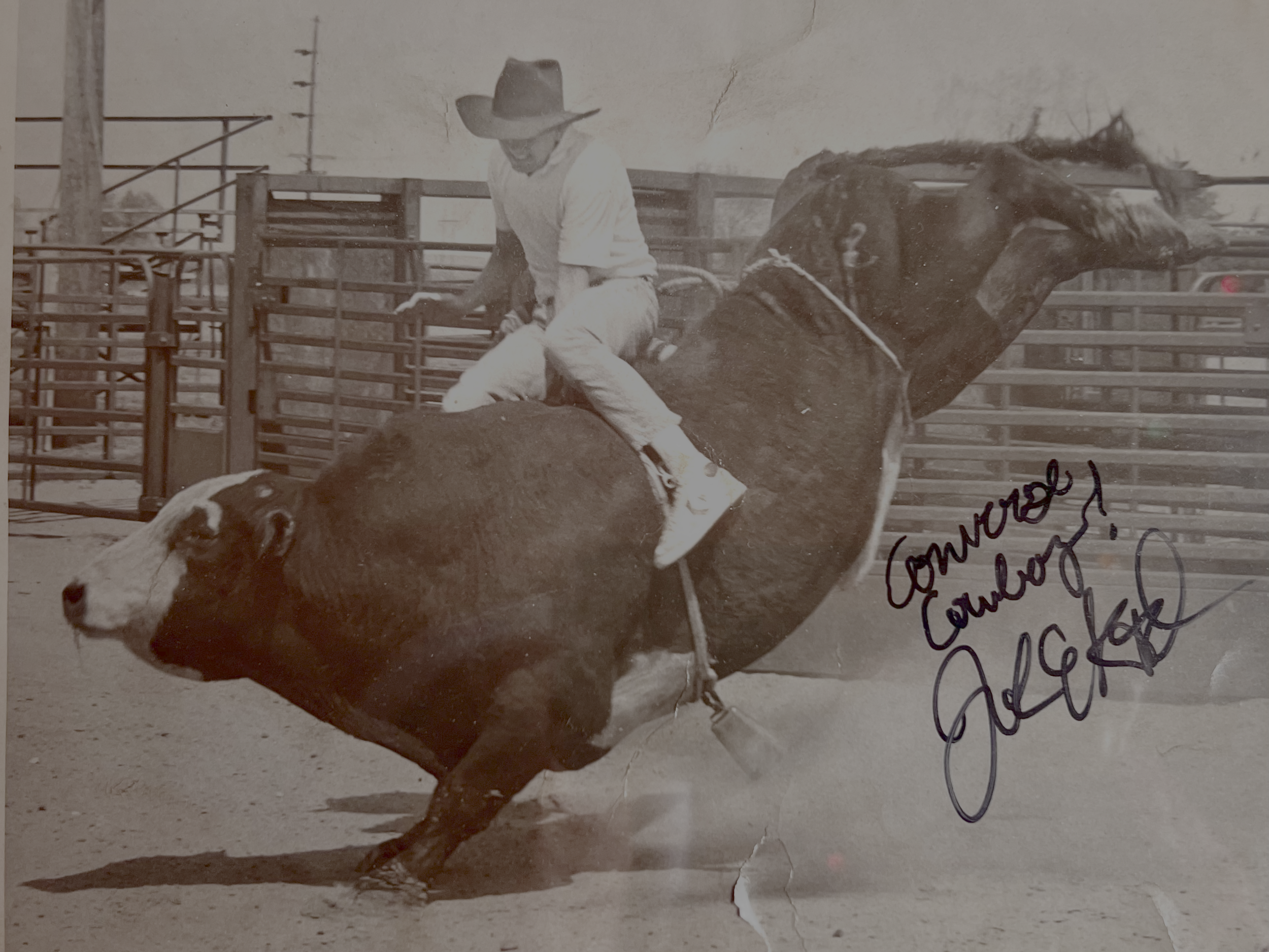 Converse Cowboy explores the evolving mythology of the American West through a contemporary lens. Inspired by a real photograph of my Uncle John riding a bull in his Converse Chuck Taylors, this painting captures a collision between traditional rodeo imagery and familiar symbols of American pop culture. Dressed in classic Levi's denim, a golf polo, and sneakers rather than boots, the rider becomes a modern cowboy—one foot planted in the mythology of the West and the other in the everyday iconography of contemporary America.