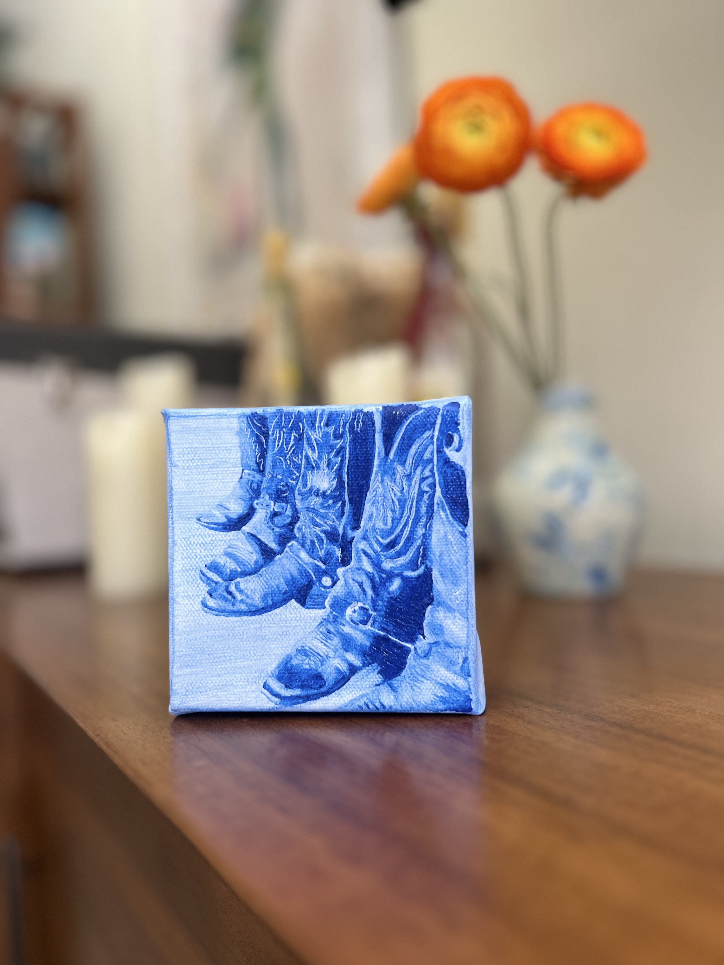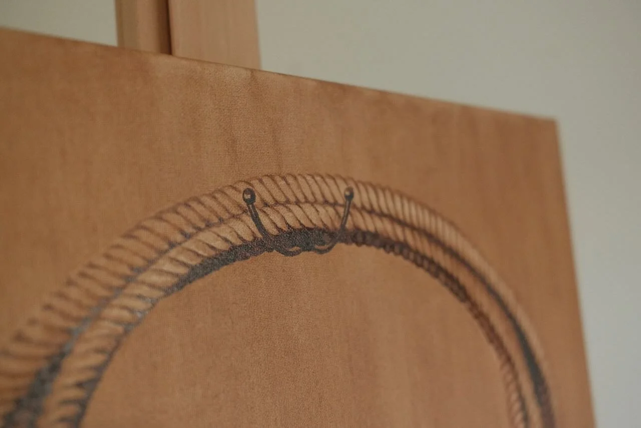 “Wound Up” is a monochrome study and reflection on form vs. function. This painting showcases a lasso, a tool made for dynamic movement, at rest and waiting for its next adventure.